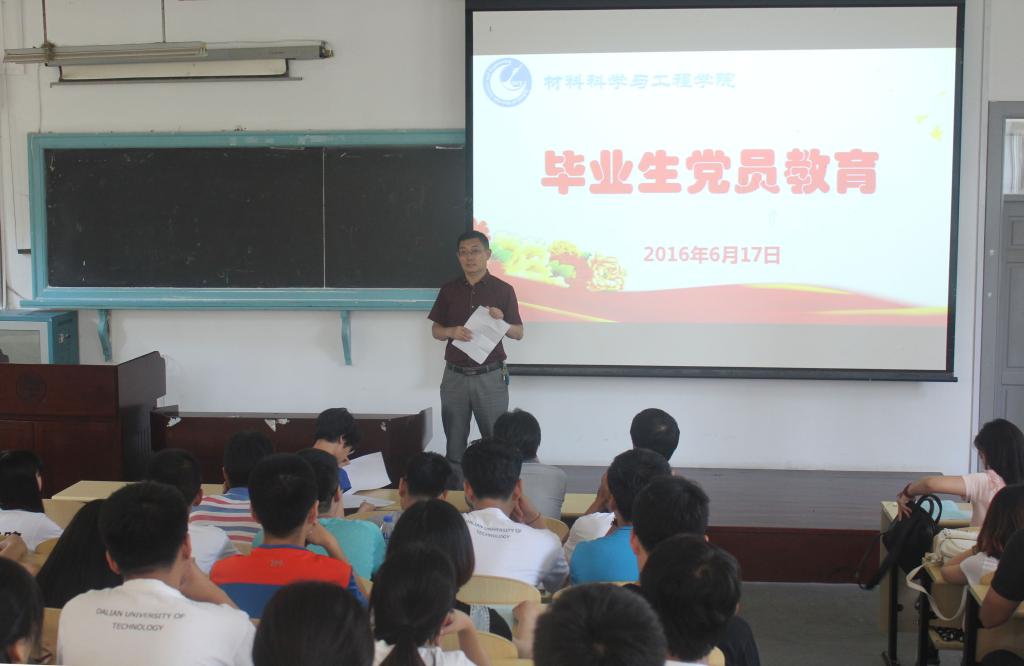 为了加强毕业生党员教育,激励毕业生党员在新岗位继续发挥党员先锋模范作用,6月17日下午,金沙集团1862cc成色在材料馆101教室召开毕业生党员教育大会。此项工作的开展,紧紧围绕了党中央关于开展组织关系集中排查与“两学一做”学习教育的要求,充分结合了开展毕业生党员组织关系接转教育工作的现实需要。学院党委书记王同敏、组工副书记戚凤芝、学工副书记苏克治、辅导员窦智,以及2016届全体毕业生党员参加了此次教育活动。