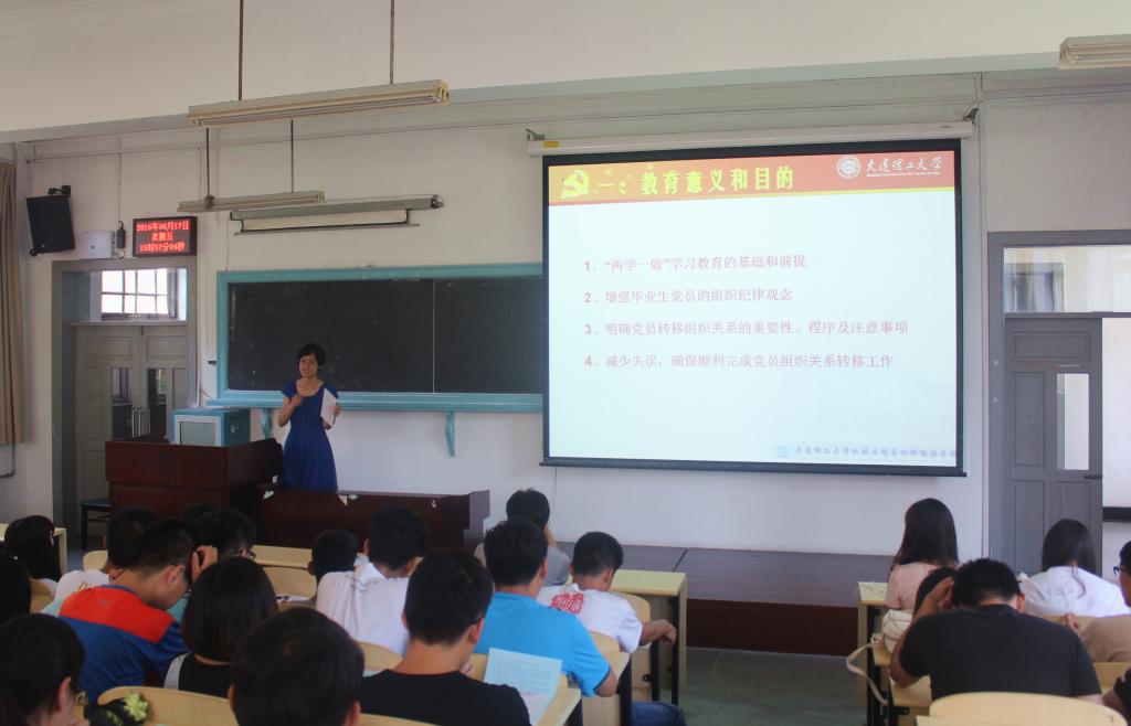 戚凤芝针对党员组织关系接转这一主题对毕业生党员进行了专题教育。她从增强毕业生党员的组织纪律观念出发,结合近期全党开展的组织关系集中排查工作,强调了党员转移组织关系的重要性和意义,详细地为大家讲解了党员组织关系转移的流程、组织关系接收地址、以及特别注意事项等,并希望毕业生党员能严格按照要求接转组织关系,做一名合格党员,不给组织管理添麻烦,坚决不做“口袋党员”。