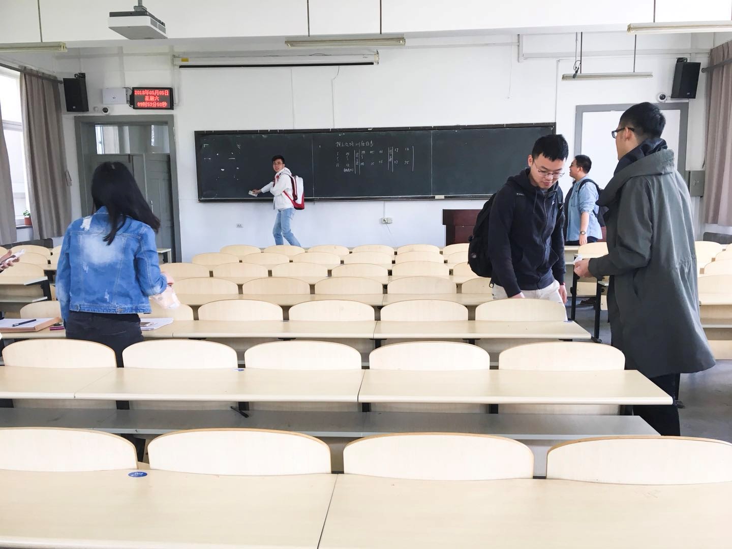 2018年5月5日早上,我们第二发展小组的同学对材料管的教室进行了整理和打扫。包括擦黑板,扫地,整理桌面上的垃圾,收拾窗帘。给新的一周准备好了干净整洁的教室。