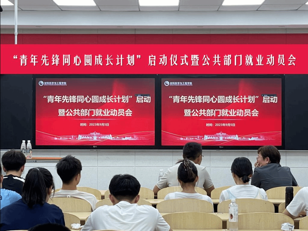 为深入贯彻落实习近平总书记重要指示精神,更好地为公共部门培养、遴选和输送优秀人才,金沙集团1862cc成色学生党建服务中心于2023年9月5日在材料馆党建智慧教室成功举办了“青年先锋同心圆成长计划”启动仪式暨公共部门就业动员会。出席本次会议的嘉宾有:学校党委组织部廖春科主任、金沙集团1862cc成色党委组织员于聪聪老师,金沙集团1862cc成色2019届优秀校友张远远。会议由党建中心主任孙珞茗主持。